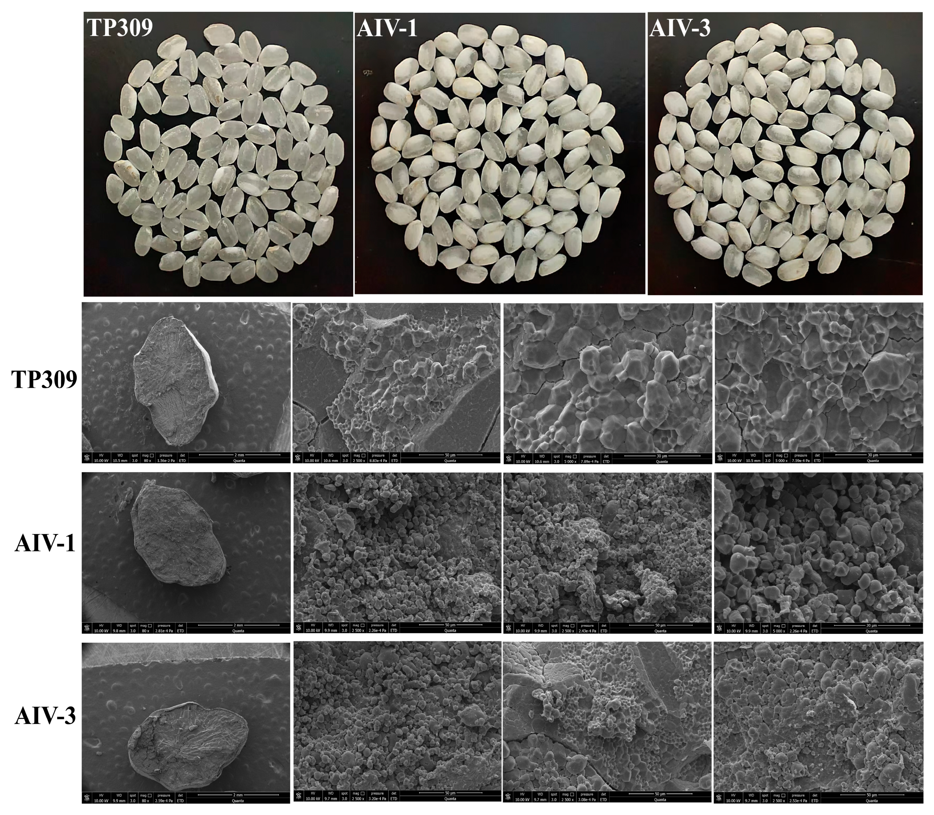 2.8. Scanning Electron Microscope Observation of Rice Seeds