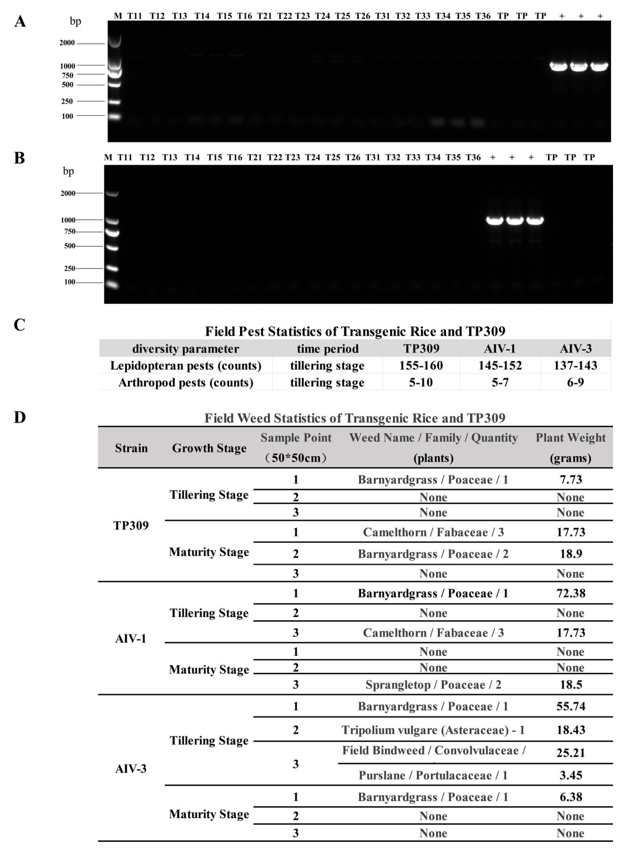 3.7. Safety Evaluation of Rice Strains Transgenic for AIV-1 and AIV-3