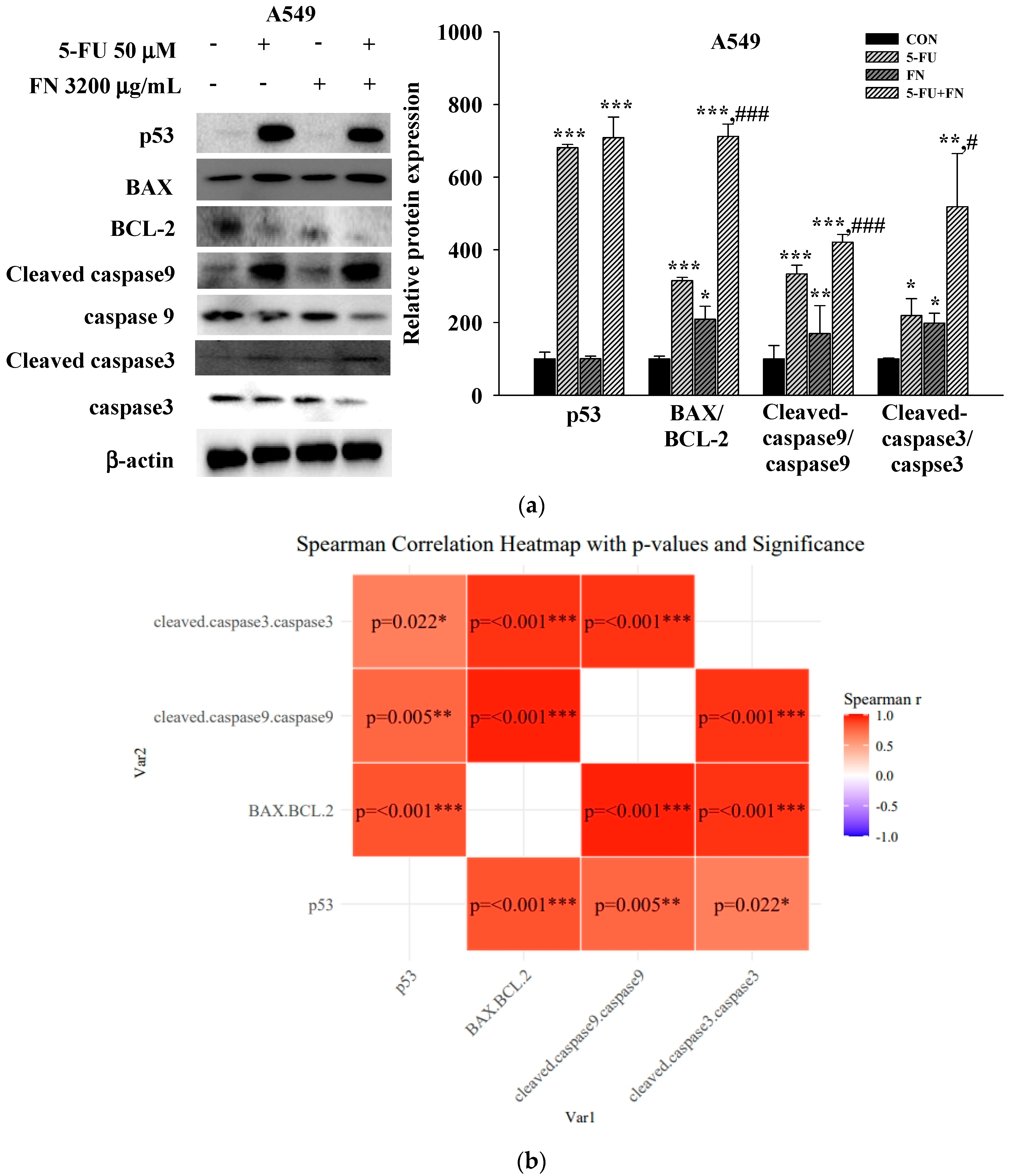 3.4. Effects of 5-FU, DOX, and VIN Combined with NFN or FN on Apoptosis-Related Signaling Pathways in A549, MCF-7, and SH-SY5Y Cells