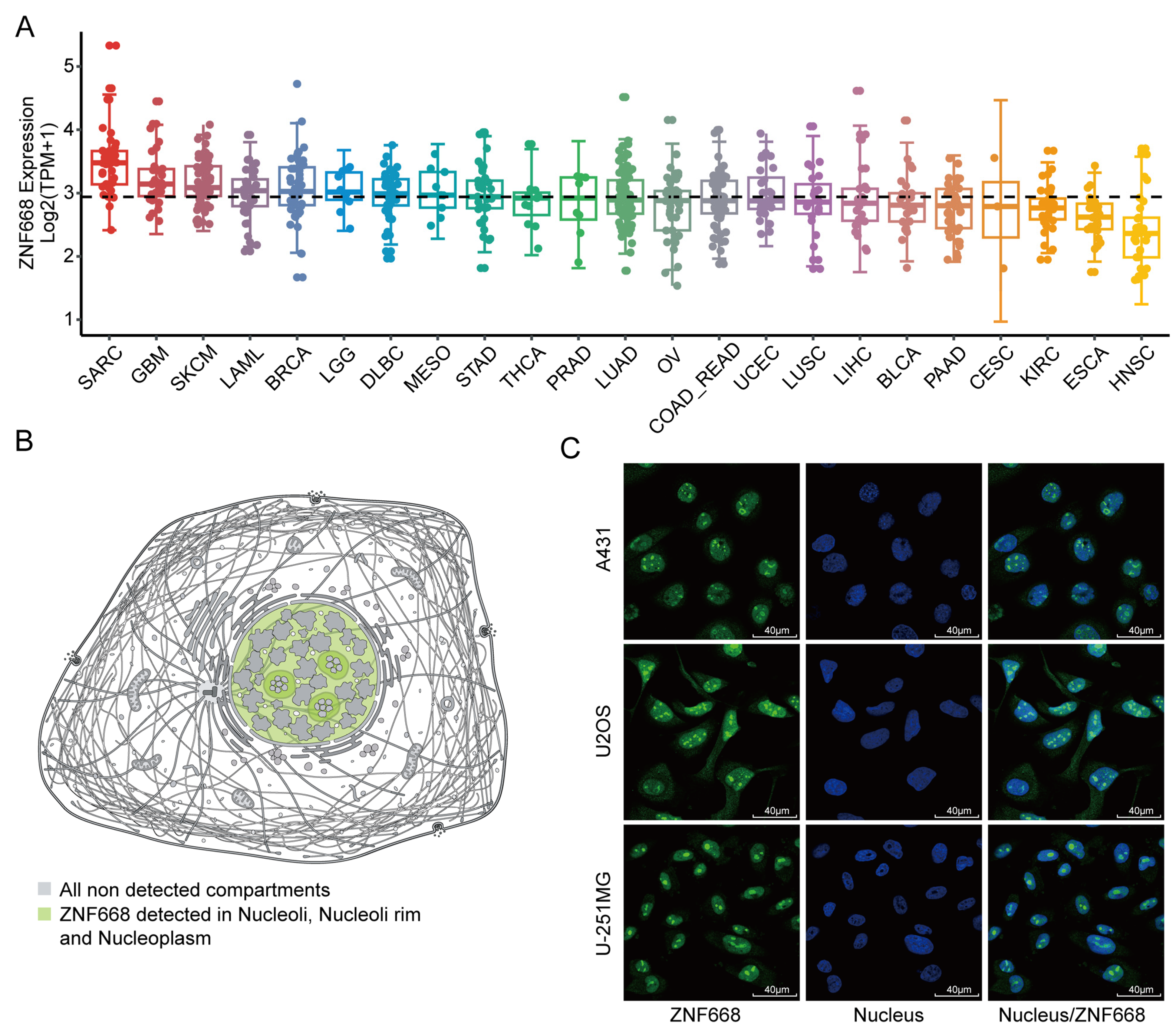 2.1. ZNF668 Expression and Subcellular Localization Analysis