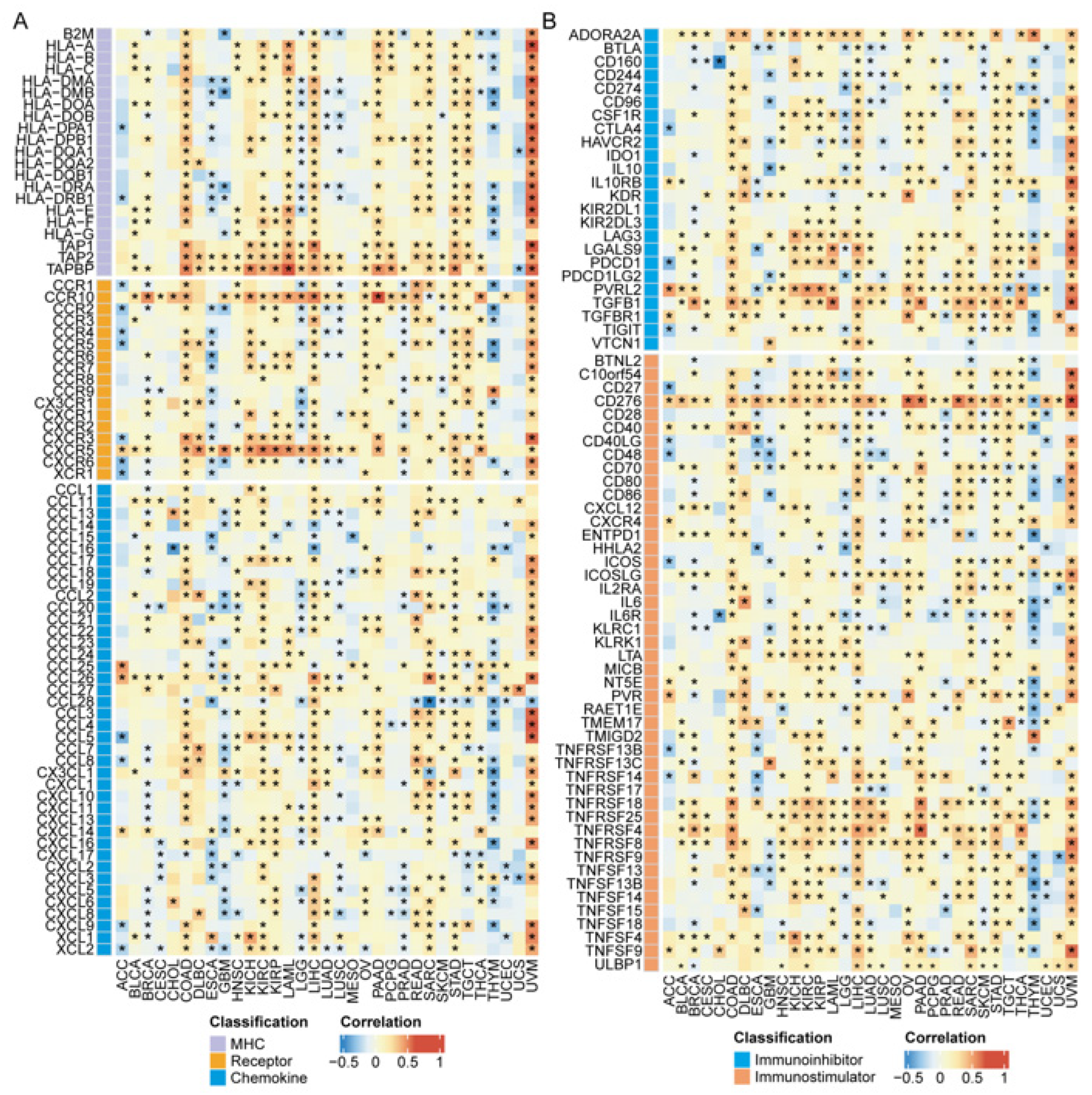 3.8. Association of ZNF668 Expression with Immune Regulatory Molecules