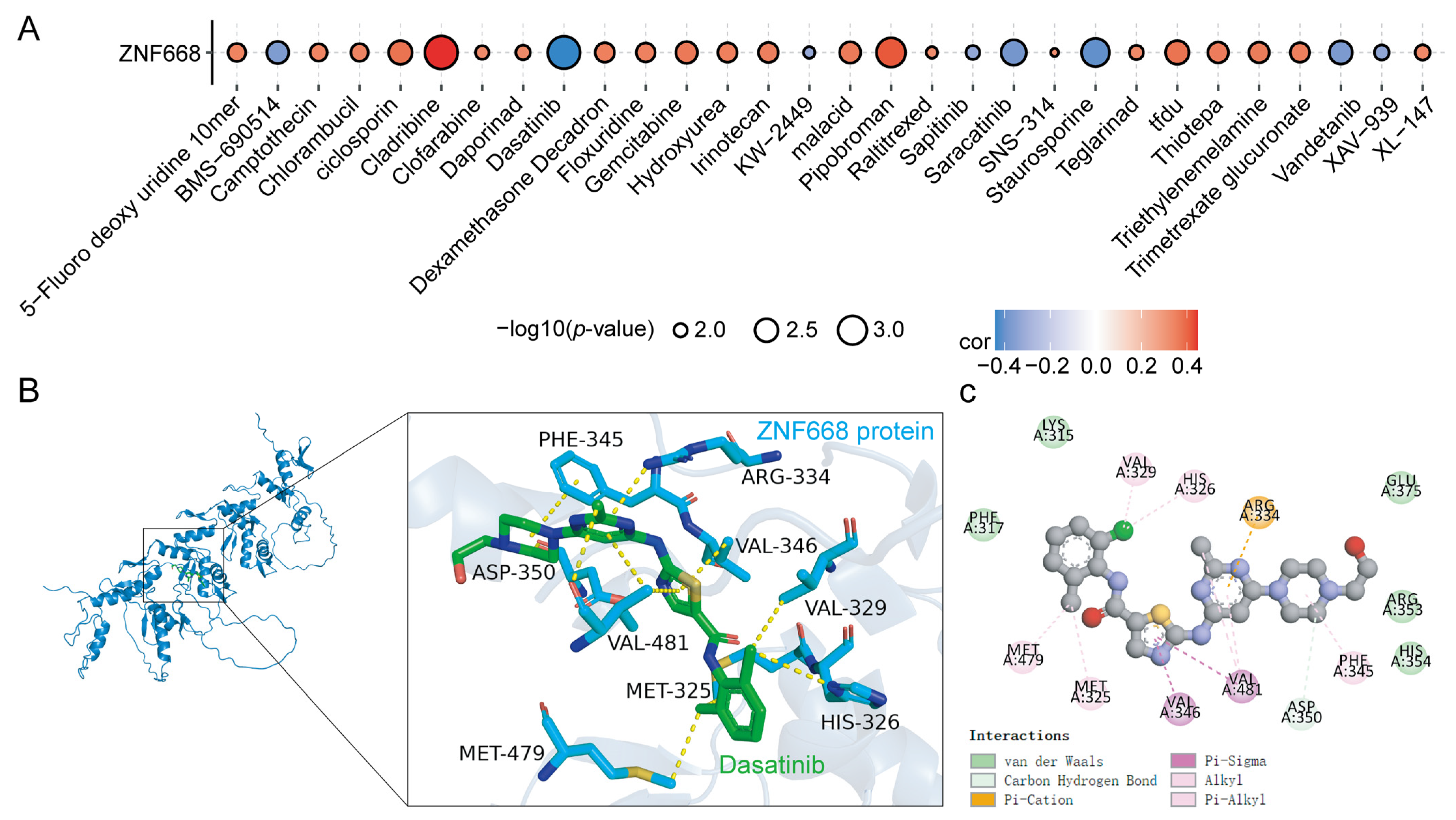 2.9. Docking Validation of Drug Molecule Components and ZNF668