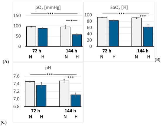 4.1. Effects of Prolonged Hypoxia on the General Condition of the Animals