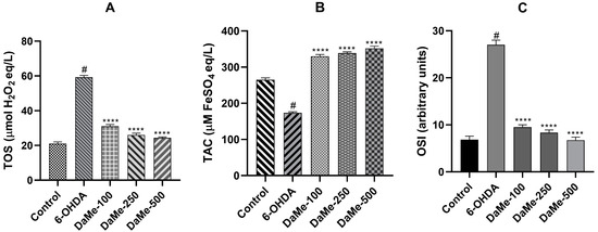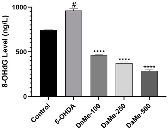 3.6. Effect of DaMe on Oxidative DNA Damage in SH-SY5Y Cells Induced with 6-OHDA