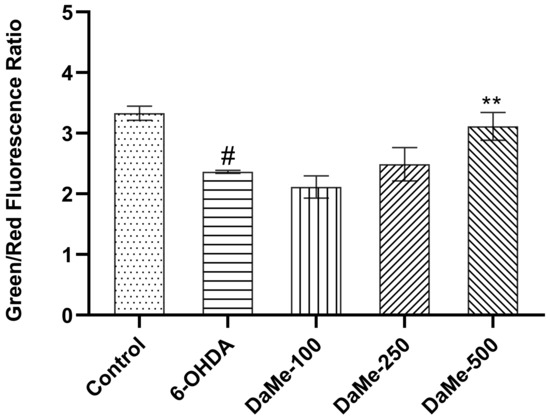 3.5. Effect of DaMe on the Mitochondrial Membrane Potential of SH-SY5Y Cells Induced with 6-OHDA