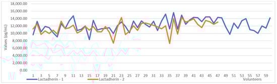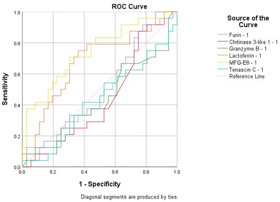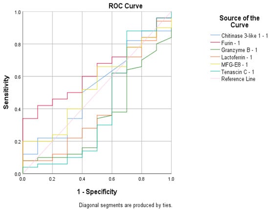 All the tested markers, chitinase 3-like 1, furin, granzyme B, lactoferrin, lactadherin, and tenascin C were detected in the breast milk of every mother in the batch. The statistical parameters relevant to describing the variability of the obtained data are presented in Table 5.