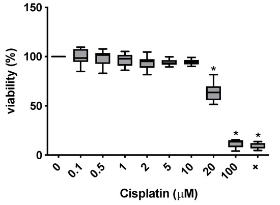 3.2. Toxicity of Cisplatin in the MTT Assay
