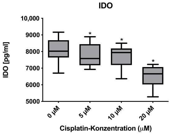 von Fournier A, Würflein E, Moratin H, Stöth M, Ehret Kasemo T, Herrmann M, Goncalves M, Hagen R, Hackenberg S, Gehrke T, et al. Cisplatin-Mediated IL-6 and IDO1 Suppression in Mesenchymal Stromal Cells: Implications for Tumor Microenvironment Modulation In Vitro. Current Issues in Molecular Biology. 2025; 47(4):231. https://doi.org/10.3390/cimb47040231