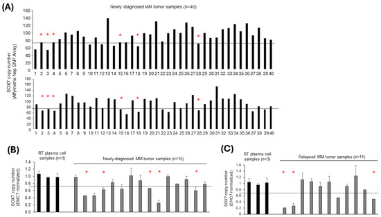 3.1. SOX7 Deletions Are Frequent in Diagnostic and Relapsed MM Samples