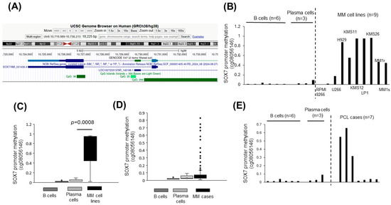 3.2. SOX7 Promoter Is Hypermethylated in Plasma Cell Malignancies
