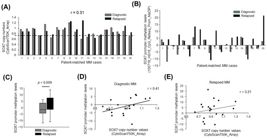 - Krzeminski, P.; Corchete, L.A.; García, J.L.; López-Corral, L.; Fermiñán, E.; García, E.M.; Martín, A.A.; Hernández-Rivas, J.M.; García-Sanz, R.; San Miguel, J.F.; et al. Integrative Analysis of DNA Copy Number, DNA Methylation and Gene Expression in Multiple Myeloma Reveals Alterations Related to Relapse. Oncotarget 2016, 7, 80664–80679. [Google Scholar] [CrossRef] [PubMed]