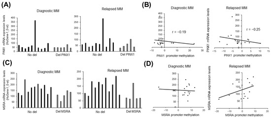 2.11. Integrated Analyses of Copy Number, Promoter Methylation, and Transcript Expression of the Candidate Tumor Suppressors Located in del8p23.1 in Diagnostic and Relapsed MM Cases