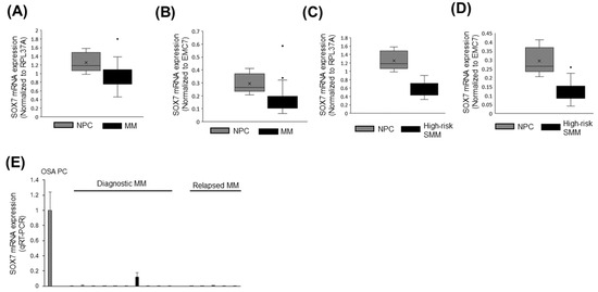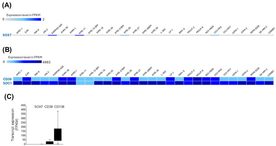 2.12. Evaluation of SOX7 mRNA Expression Levels Through Reanalyses of the Publicly Available GEP Data of Plasma Cell Neoplasms and Normal Plasma Cells