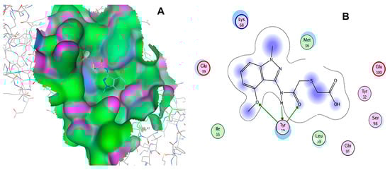 The docking poses obtained were analyzed in PyMOL, focusing on the stability of the ligands within the binding site. The protein–ligand interactions were identified by measuring the distances between the compounds and critical residues within the TAD cavity, considering hydrophobic interactions and hydrogen bonding.