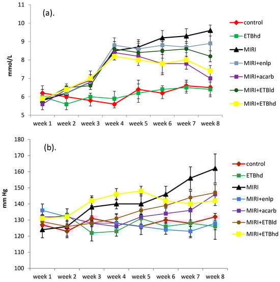 - Group 7—MIRI rats treated with ETBld for the whole period (from 1st week to the end of the 8th week);