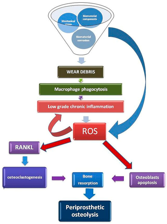 - Landgraeber, S.; Jäger, M.; Jacobs, J.J.; Hallab, N.J. The Pathology of Orthopedic Implant Failure Is Mediated by Innate Immune System Cytokines. Mediat. Inflamm. 2014, 2014, 185150. [Google Scholar] [CrossRef]