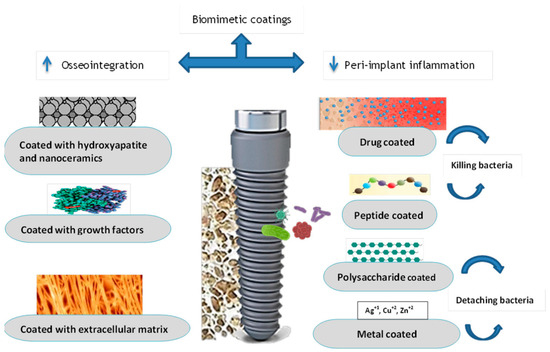 - Abdulghafor, M.A.; Mahmood, M.K.; Tassery, H.; Tardivo, D.; Falguiere, A.; Lan, R. Biomimetic coatings in implant dentistry: A quick update. J. Funct. Biomater. 2023, 15, 15. [Google Scholar] [CrossRef]