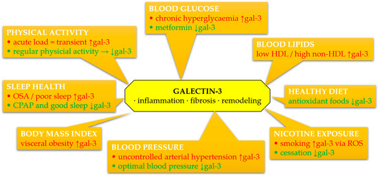 Galectin-3 can be significantly modulated by dietary habits. In the LS7 scale, diet is one of the modifiable cardiovascular risk factors, potentially influencing the concentrations of gal-3.