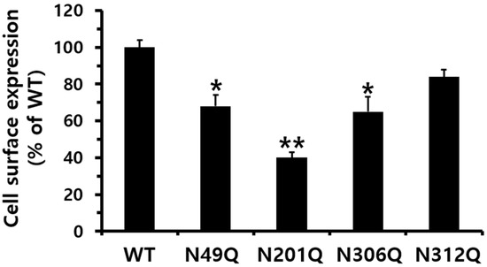 3.1. Expression at the Cell Surface After Mutation of Putative N-Linked Glycosylation Sites