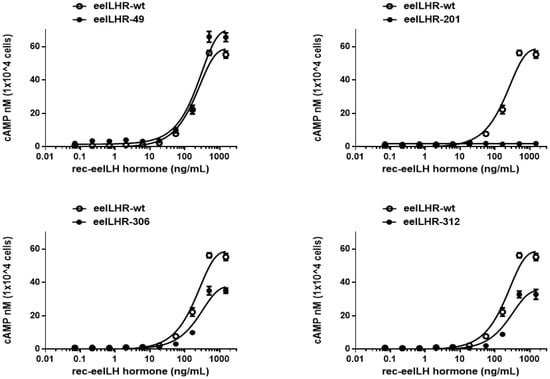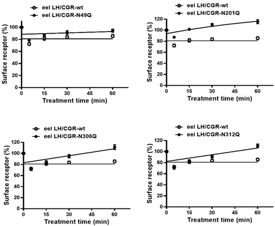 3.2. Biological Activities of eel LH/CGR-Wt and N-Linked Glycosylation Mutants