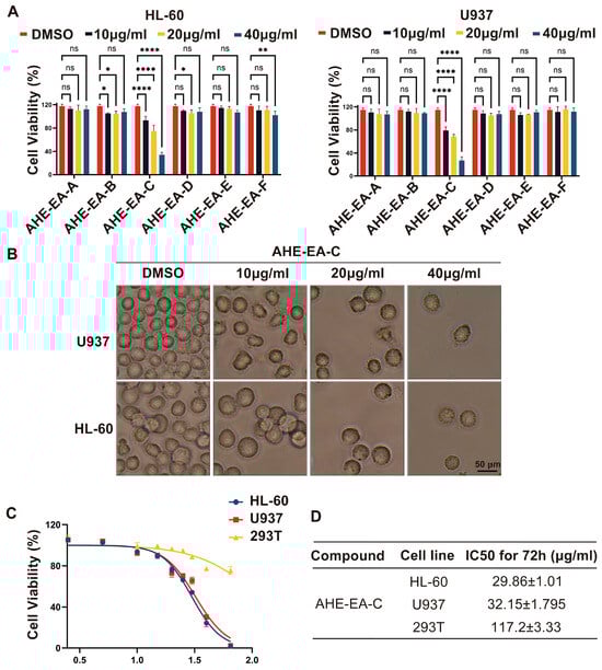 3.1. AHE-EA-C Inhibits the Cell Viability of AML Cells
