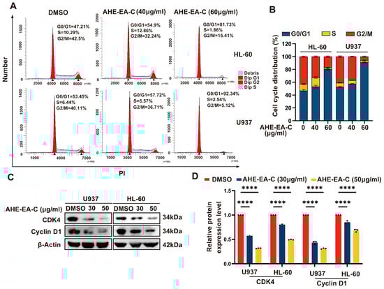 3.2. AHE-EA-C Suppresses DNA Synthesis and Induces Cell Cycle Arrest in AML Cells