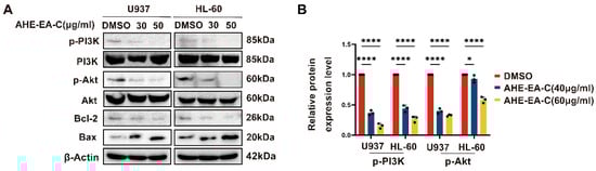 Chicago/Turabian StyleLi, Guangjie, Wenyuan Yang, Jiahui Xu, Ziqian Liu, Zhijian Li, Xiaoqiu Wu, Tongtong Li, Ruoxian Wang, Yamin Zhu, and Ning Liu. 2025. "Ethanol Extract of Adlay Hulls Suppresses Acute Myeloid Leukemia Cell Proliferation via PI3K/Akt Pathway Inhibition" Current Issues in Molecular Biology 47, no. 5: 358. https://doi.org/10.3390/cimb47050358
