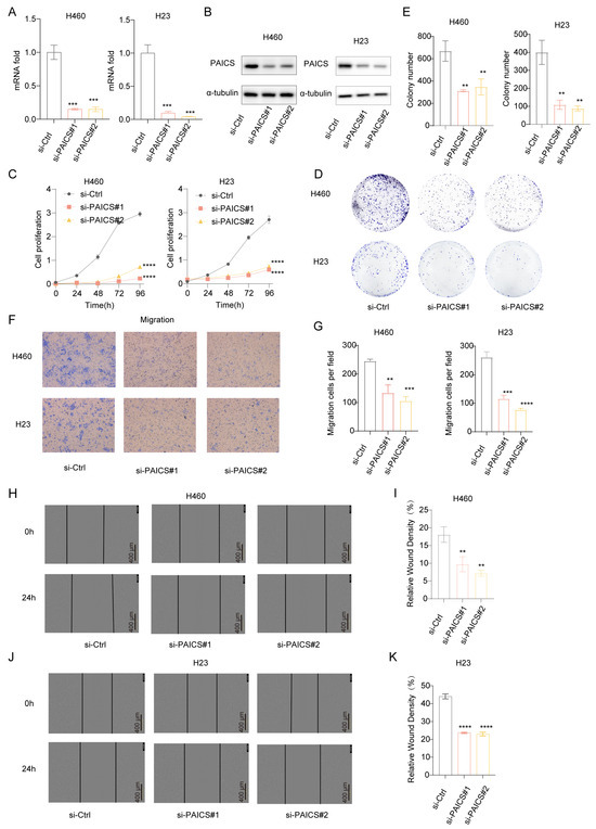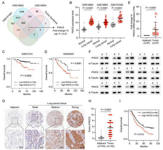 - Li, Y.; Zhu, L.; Mao, J.; Zheng, H.; Hu, Z.; Yang, S.; Mao, T.; Zhou, T.; Cao, P.; Wu, H.; et al. Genome-Scale CRISPR-Cas9 Screen Identifies PAICS as a Therapeutic Target for EGFR Wild-Type Non-Small Cell Lung Cancer. MedComm 2024, 5, e483. [Google Scholar] [CrossRef]