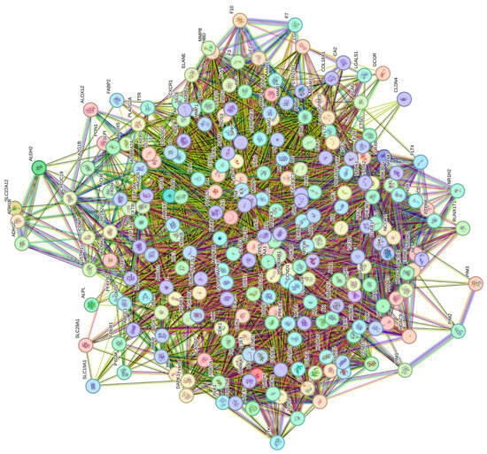 The term “acute pancreatitis” was queried across the GeneCards (https://www.genecards.org, accessed on 12 May 2025), DrugBank (https://go.drugbank.com, accessed on 12 May 2025), and Online Mendelian Inheritance in the Man (OMIM, https://www.omim.org, accessed on 12 May 2025) databases. The search results from GeneCards were filtered based on a relevance score greater than 10.