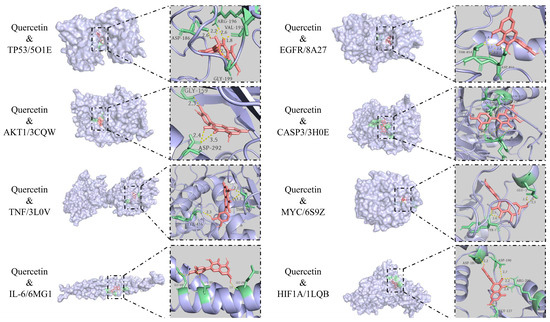 Molecular docking results of quercetin and key targets.