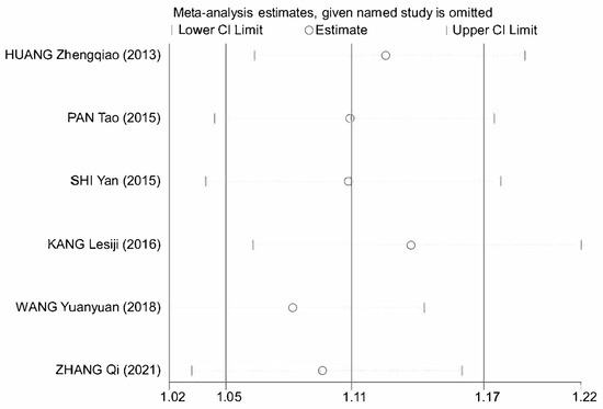 Sensitivity analysis plot of astragalus’s treatment efficacy [10,11,12,13,14,15].
