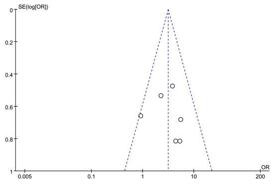 The publication bias in studies reporting the efficacy of astragalus in treating AP was assessed using a funnel plot. All six studies were symmetrically distributed around the middle line and fell within the 95%CI interval, suggesting minimal publication bias (Figure 16).