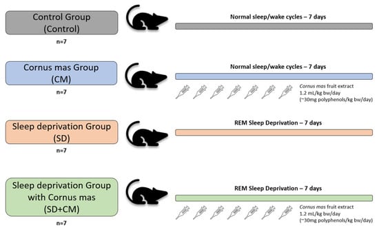 Neculicioiu, V.S.; Colosi, I.; Sevastre-Berghian, A.; Toc, D.A.; Colosi, H.A.; David, L.; Muntean, M.; Moldovan, R.; Vlase, A.-M.; Toma, V.A.; et al. Molecular Effects of Cornelian Cherry Fruit (Cornus mas L.) Extract on Sleep Deprivation-Induced Oxidative Stress, Cytokine Dysregulation, and Behavioural Changes in Wistar Rats. Curr. Issues Mol. Biol. 2025, 47, 399. https://doi.org/10.3390/cimb47060399