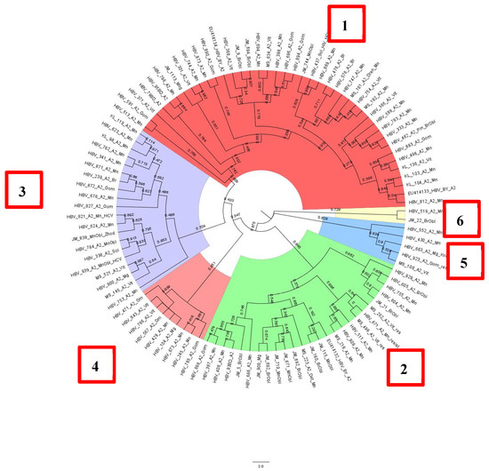 HBV DNA sequences of subgenotype A2 formed at least six clusters, with the first three accounting for almost 90% of all samples (Figure 5). All analyzed sequences were obtained from patients permanently residing in Belarus.