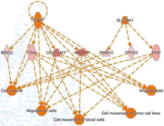 ITGB3- and MMP9-dominant regulatory pathways in sepsis via ingenuity pathway analysis. Arrow means up-regulation and * sign means high fold change value.