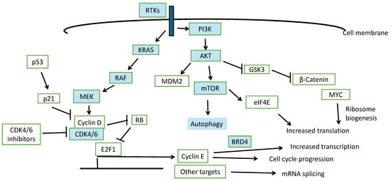 | Willobee et al. [69], Goodwin et al. [70] | PI3K/AKT signaling, autophagy, DNA damage response | Blocking feedback activation of the KRAS/MEK/ERK pathway with binimetinib or ulixertinib synergized with CDK4/6 inhibitors |