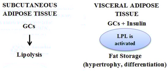 Different effects of GCs on subcutaneous and visceral adipose tissue.