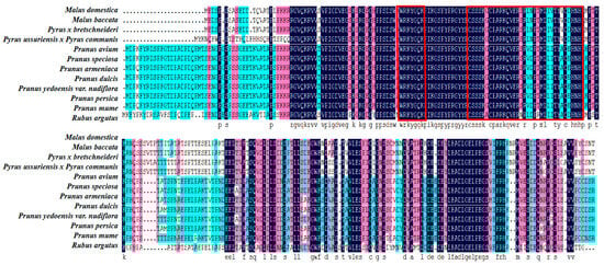 The protein sequences of the WRKY69 gene were obtained from apple genome database (https://phytozome-next.jgi.doe.gov/, accessed on 21 September 2024). Subsequently, the basic physicochemical properties of these proteins were predicted using ExPASy (https://web.expasy.org/protparam, accessed on 21 September 2024). DNAMAN software (v9.0) was used for protein sequence analysis of this gene in different species (accessed on 21 September 2024). Software MEGAX (v11.0.13) was used to construct a neighborhood (NJ)-based phylogenetic tree (accessed on 22 September 2024).