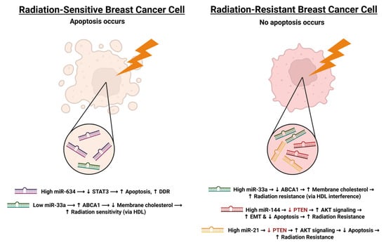 - Wolfe, A.R.; Bambhroliya, A.; Reddy, J.P.; Debeb, B.G.; Huo, L.; Larson, R.; Li, L.; Ueno, N.T.; Woodward, W.A. MiR-33a Decreases High-Density Lipoprotein-Induced Radiation Sensitivity in Breast Cancer. Int. J. Radiat. Oncol. Biol. Phys. 2016, 95, 791–799. [Google Scholar] [CrossRef]