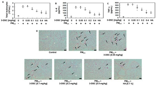 3.4. The Effects of 3-DSC on PM2.5-Induced Pulmonary Inflammation