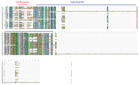 Physicochemical properties of each Chi protein (including amino acid sequence length, theoretical isoelectric point, molecular weight (Mw), instability index, aliphatic index, and grand average of hydropathicity) were calculated using the ProtParam tool (https://web.expasy.org/protparam/, accessed on 7 December 2024).