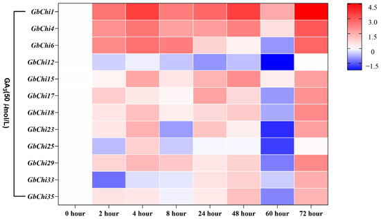 Analysis of the expression profile of GbChi gene under treatment with GA hormone.