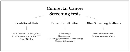 - Gupta, S. Screening for Colorectal Cancer. Hematol. Oncol. Clin. North. Am. 2022, 36, 393–414. [Google Scholar] [CrossRef] [PubMed]