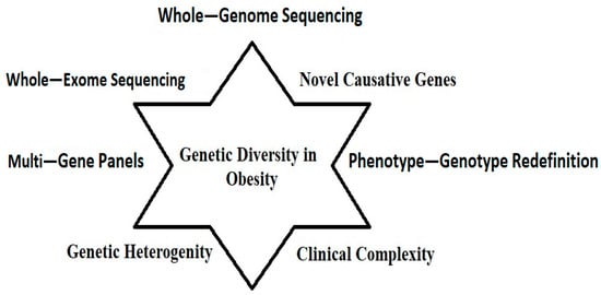 Limitations and advancements in genetic diagnosis of obesity: essential elements influencing our knowledge of genetic diversity in obesity, such as phenotype–genotype redefinition, novel gene discovery, and sophisticated sequencing methods.