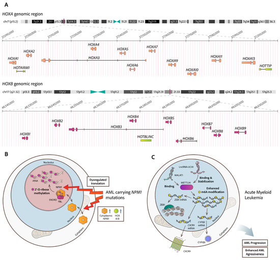 - Khan, I.; Amin, M.A.; Eklund, E.A.; Gartel, A.L. Regulation of HOX Gene Expression in AML. Blood Cancer J. 2024, 14, 42. [Google Scholar] [CrossRef] [PubMed]