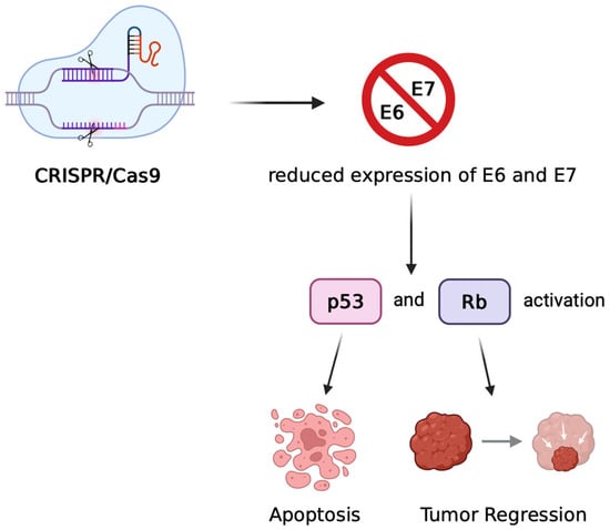 - Hu, Z.; Yu, L.; Zhu, D.; Ding, W.; Wang, X.; Zhang, C.; Wang, L.; Jiang, X.; Shen, H.; He, D.; et al. Disruption of HPV16-E7 by CRISPR/Cas System Induces Apoptosis and Growth Inhibition in HPV16 Positive Human Cervical Cancer Cells. Biomed. Res. Int. 2014, 2014, 612823. [Google Scholar] [CrossRef]
