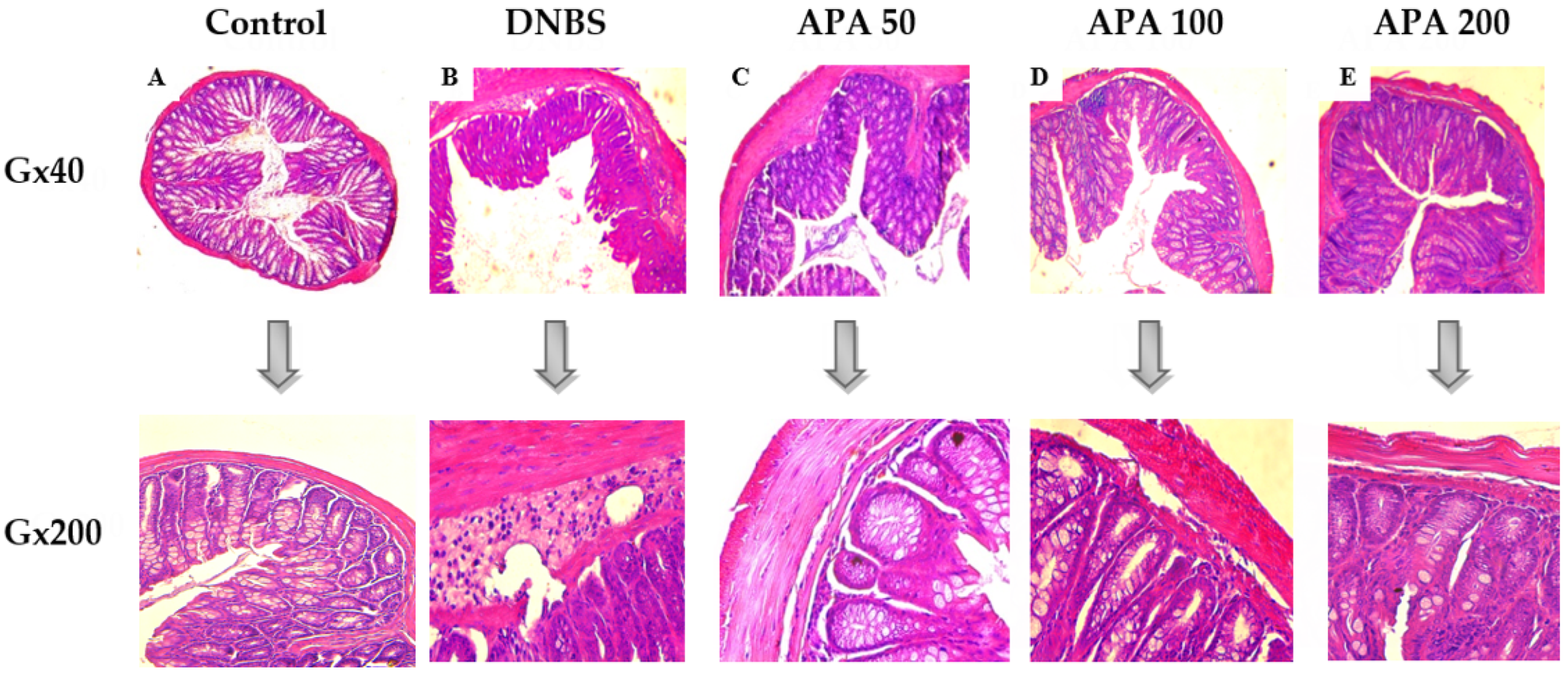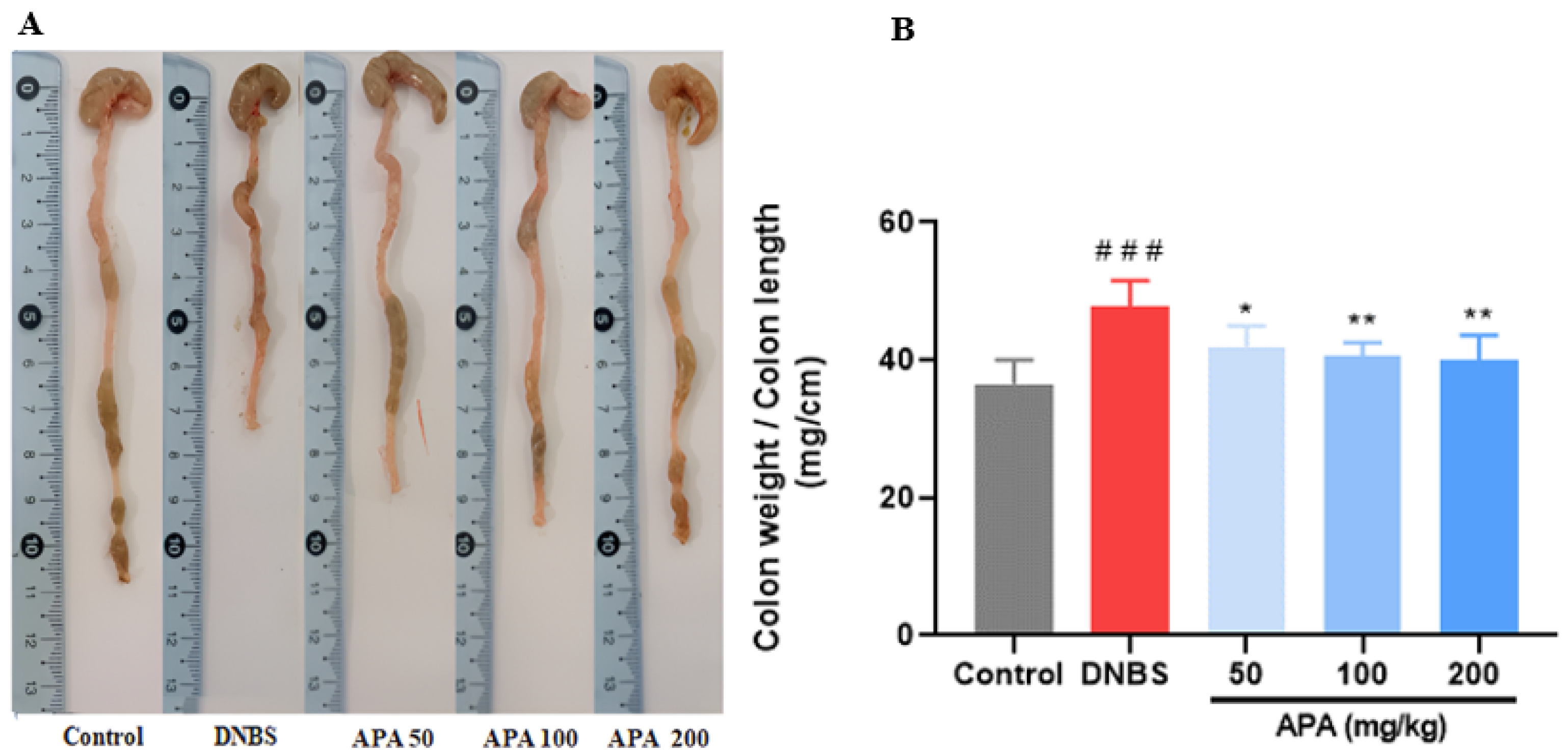 3.3. Effect of APA on Colonic Lesions