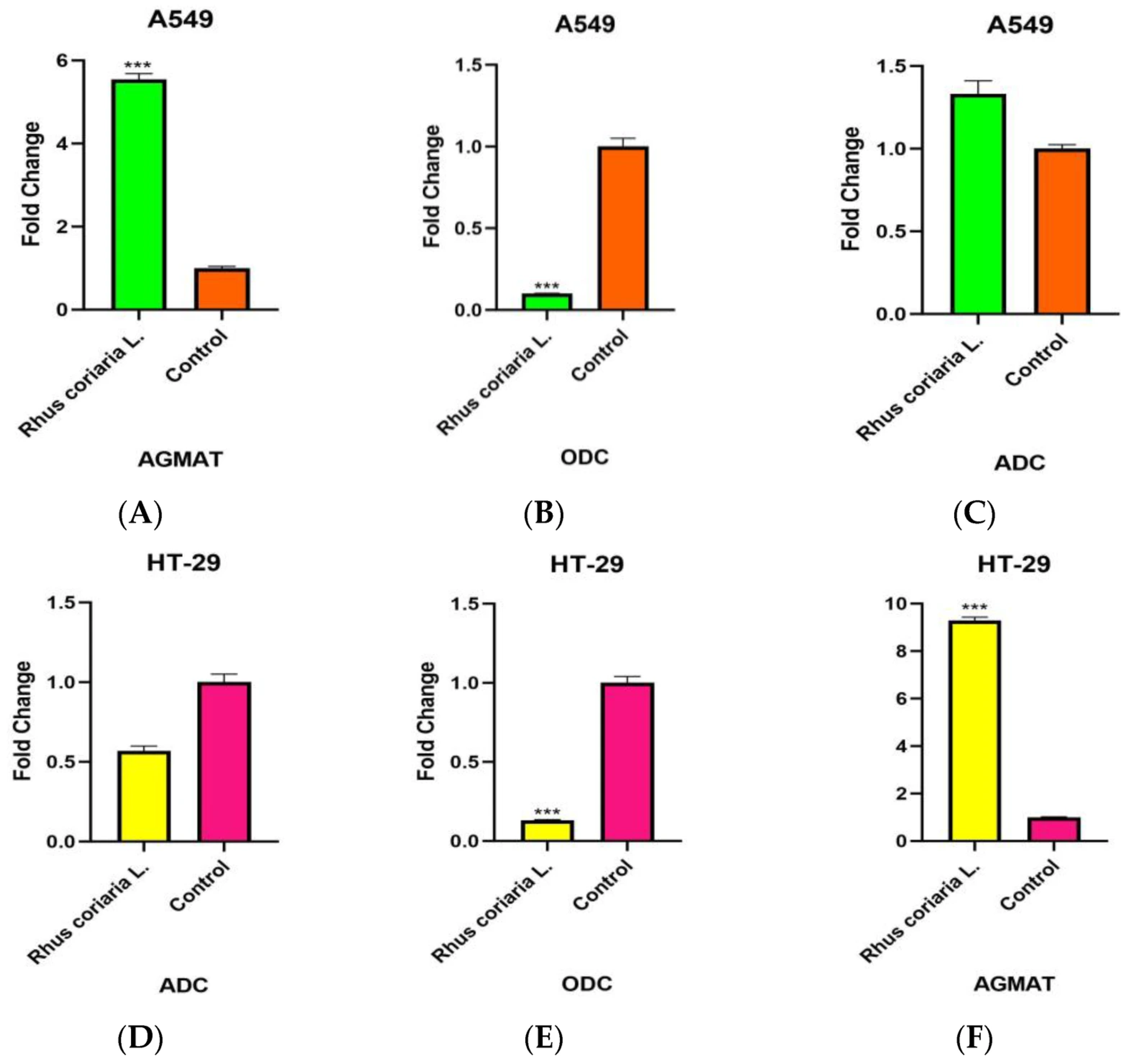 3.4. Expression Levels of ADC, ODC and AGMAT Genes Associated with the Polyamine Pathway