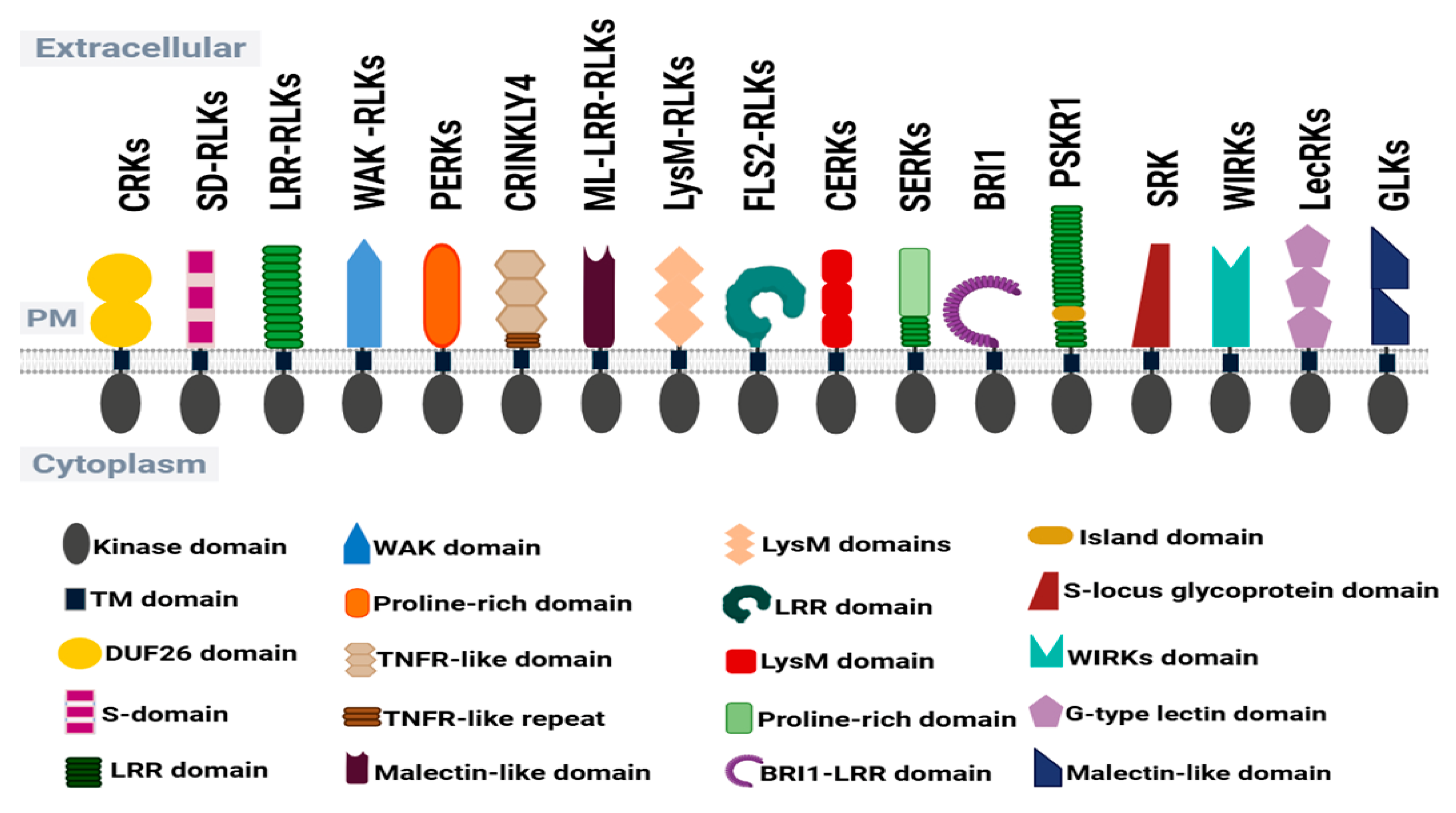 Figure 3. Schematic representation of major receptor-like kinases and their characteristic extracellular domains in wheat plants.