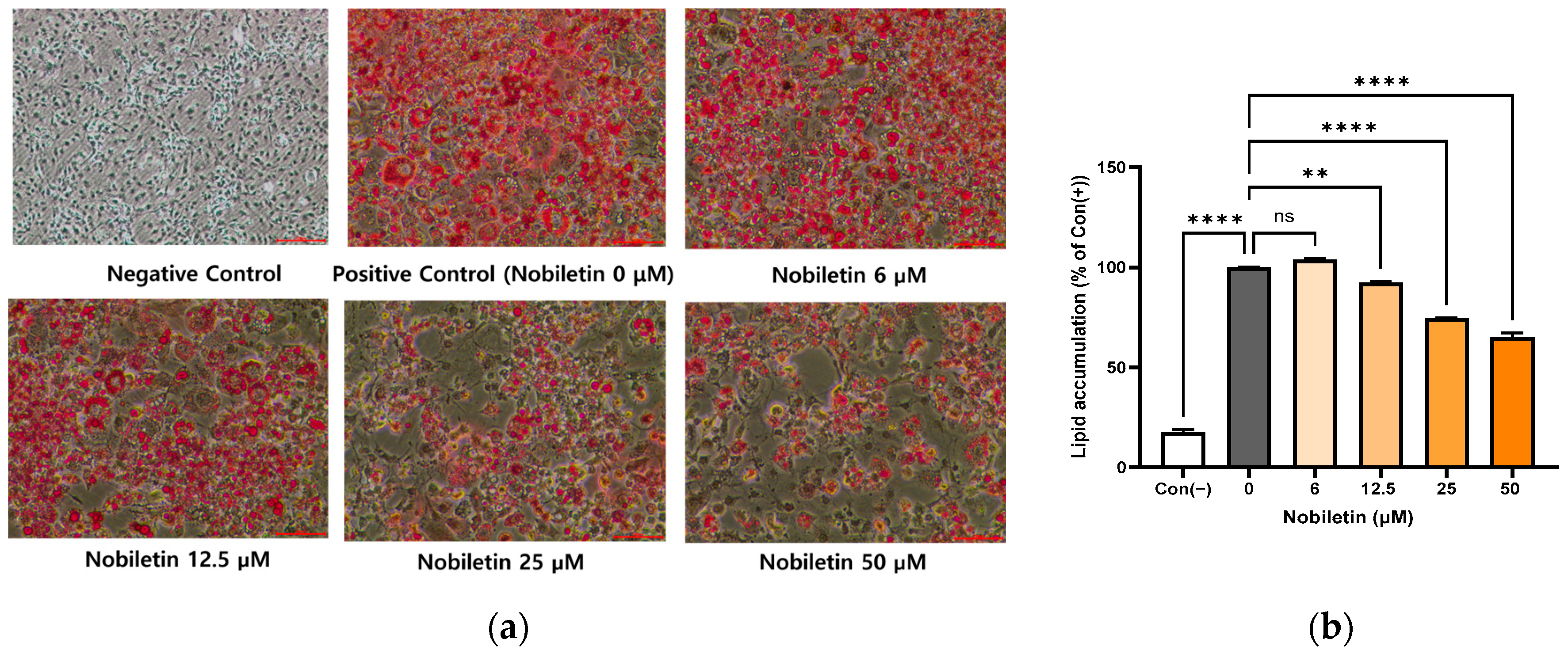 - Saito, T.; Abe, D.; Sekiya, K. Nobiletin enhances differentiation and lipolysis of 3T3-L1 adipocytes. Biochem. Biophys. Res. Commun. 2007, 357, 371–376. [Google Scholar] [CrossRef]